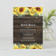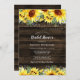 Watercolor yellow sunflowers are a beautiful design for a summer or fall bridal shower. This rustic sunflower bridal shower invitation features a colorful bouquet of sunflowers, daisies, blue flowers and string lights. The colors pop on the dark barn wood background. Use the online template fields to personalize this unique invite today!