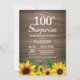 Convite Rustic Sunflower Surprise 100th Aniversário