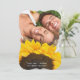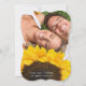 As cores de fundo (cor de cartão) e fonte podem ser editadas para qualquer cor personalizada que corresponda às suas Cores de Casamento usando qualquer combinação de cores. Farmhouse Country Floral Large Sunflower em Bottom of Back com sua foto inserida. A Frente tem um Grande Girassol como pano de fundo do seu Convite de Casamento com Embelagens Brancas e Românticas, além de uma camada para iluminar o fundo e destacar a mensagem. Trendy Popular message, que pode ser editada para outra citação favorita, se desejar. Hoje Eu Casado Meu Melhor Amigo. Perfeito para Queda, outono ou Verão, tropa de fazendeiro russo do Carão ao ar livre.