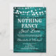 Celebrate your love in bold and vibrant rustic style with this striking "Nothing Fancy Just Love" wedding invitation! Featuring delicate string lights and elegant script on a rich teal green painted wood background. A unique and eye-catching design that stands out from the crowd — perfect for casual beach-inspired weddings, teal-themed celebrations, backyard ceremonies, elopements, and intimate gatherings with a cool and colorful twist!