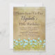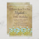Celebrar com um convite artístico único. Este convite de aniversário rústico de ouro tucano com elegantes flores azuis de aquarela está pronto para você personalizar. Fácil de personalizar para essa celebração especial.