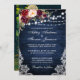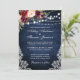 Luzes De Corda De Madeira Azul Rústica Luzes Lace Borgonha Aquarela Convite De Casamento Floral - Foto De Volta