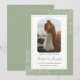Celebrate your special day with this rustic, personalized wedding design featuring a sage green background with white elegant flower on the corners, adding a charming, romantic touch, making it perfect for barn, outdoor, woodland, or country-themed weddings. Easily customize with your own wedding details and photo for a unique, memorable wedding that guests will love. Browse our collection for other matching products.