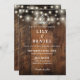 This rustic western barn wood wedding invitation featuring horseshoes and string lights on a barn wood background can be personalized with your information in stylish typography. Designed by Thisisnotme©