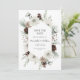 Rustic Winter Holiday Save the Date Invitation com belos florais de inverno sofisticados com pínus cones e cada verde e uma foto de cheio do casal feliz no verso do anúncio. Nosso modelo de alta qualidade torna tão fácil personalizar seu convite. O convite faz parte de uma coleção.