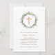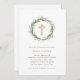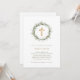 Estes convites batismos simples e elegantes e neutros em termos de gênero apresentam uma coroa botânica da aquarela verde de inverno, e uma madeira rústica olha de um fundo branco.