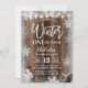 Floco de neve de prata russo ONEderland 1rua Barn Wood Convites de aniversário de inverno.