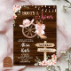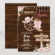 Rustic Wood Boots And Bows Baby Shower Invitation, Wooden Background Coquette Bow Floral Baby Shower Invite, Editable Baby Shower