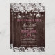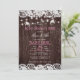 Rustic country couple baby shower backyard barbecue invitation on dark brown barn wood featuring pink typography, white flowers, lace borders, and strings of twinkle lights. +++++++++++++++ The invitation is suitable for summer autumn fall outdoor garden backyard rustic country bbq girl baby shower parties.