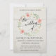 Casamento de fazenda, celeiro ou jardim. Fundo de madeira em forma de crânio de campo com pequena fatia simples de rosa com mini flores e bagas semeadas com eucalipto combinado com letra escrita manual com letra "o casamento de". Convite de formato quadrado. Simples. Moderno. Elegante. Ideal para um casamento em todas as estações, este jardim do estilo boho juntou trabalho de arte de cor de água de folhagem foi criado pela artista Audrey Jeanne Roberts. Direitos autorais.