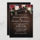 Convite Rustic Wood Burgundy Floral Mason Jar Wedding