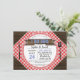 Design único com formato vermelho, faço tipografia de CHURRASCO com efeito gingham azul, em uma faixa de madeira, tudo em um fundo de madeira antigo. Use a ferramenta Personalizar para adicionar suas informações. Para mais, veja a minha coleção I DO CHURRASCO Chalkboard/Barn e Gingham.
