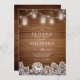 Convite Rustic Wood Mason Jar String Luzes Lace Casamento
