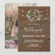 Convite Rustic wood string lights monogram photo Wedding