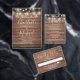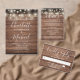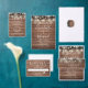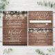 Apresentando bonito luzes de cordas, jarras de pedras e nomes elegantes de estilo de assinatura em um fundo de madeira rústico, juntamente com sua foto escolhida no verso, este convite de casamento de na moda pode ser personalizado com seus detalhes de celebração de casamento. Projetado por Thisnotme©