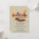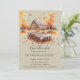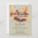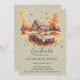 Uma paisagem acolhedora no outono, com uma casa de madeira rústica no fundo cercada por ouros e árvores de queda de laranja. No primeiro plano, uma longa mesa de jantar ao ar livre é colocada com uma toalha branca de mesa, cadeiras, xícaras, pratos, e uma peça central de abóboras e uma lanterna. Folhas caídas espalham-se pelo chão, criando uma atmosfera sazonal quente. O estilo é aquoso macio, parente e sonhador, com tons de terra quente e luz suave. O trabalho de arte tem uma estética aconchegante, sazonal e cottagecore, cores suaves, para o convite de Ação de Graças. DESIGN DE © Você pode personalizar com seus nomes e texto. Você pode alterar a cor do texto e o estilo da fonte usando a opção personalizá-lo. NOTA: as cores exibidas on-line podem variar ligeiramente do produto real.