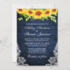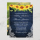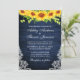 Rustic Blue Wood Watercolor Floral e Verde Invitação de Casamento de Locais de Girassol - Foto de Volta