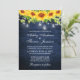 Convite Rústica Azul Madeira Floral Girassol Foto