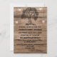 Rústica Wood String Lights & Tree Family Reunion Invitation apresenta fundo de madeira de celeiro, luzes de cordas, antiga árvore e um modelo de texto moderno. Um design perfeito para convidar amigos e forreiros familiares. Clique no botão personalizar para personalizá-lo com seu próprio texto.
