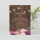 Madeira russa com luzes de cordas cintilantes e burgundy com convite floral de festa de formatura cor-de-água rosa pincelada. Perfeito para segundo grau ou formandos. Entre em contato conosco para obter ajuda com a personalização ou para solicitar produtos correspondentes ou coordenadores.