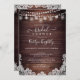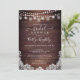 Convites de chá de panela russos com madeira de celeiro de campo escuro com luzes de cordas, luzes de festas de pedras e rendas brancas com tipografia escrita à mão. Entre em contato com o designer por meio do Zazzle Chat ou makeitaboutyoustore@gmail.com se você quiser que este design seja modificado, em outro produto ou em itens de coordenação.