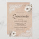 Convide seus convidados com este elegante convite Quinceanera com lindas flores e rendas com tipografia moderna em uma volta rustica. Basta adicionar os detalhes do seu evento neste modelo fácil de usar para torná-lo um convite de tipo único.