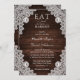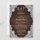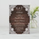 Complemente seu país rústico, ou festa de casamento de celeiro com estes elegantes convites de casamento rústicos com rendas florais brancas em um fundo de madeira de celeiro. Itens correspondentes disponíveis para ir com estes convites de casamento de chic.