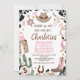 Rustic Pink Saddle Primeiro primeiro aniversario Rodeio Convite Rosa, castanho-claro e 1rua de moça negra com chapéu de vaqueira, crânio de touro, cacto, corda, botas de vaqueira e muito mais. Este meu primeiro convite de aniversário de rodeio para uma menina também apresenta um padrão de impressão de vaca negra e é ideal para uma primeira festa de aniversário ocidental ou silvestre.