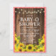 Convite de Churrasco de Bebê Q para Casais com Luzes de Corda e Girassóis Rústicos em Madeira