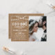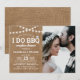 Convite de chá de panela para casais rústicos com tema de churrasco apresentando um fundo texturizado de aniagem, luzes cintilantes, uma foto dos noivos e um modelo de casamento moderno.
