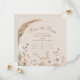 Este convite de save the date inspirado no estilo rústico apresenta rosas brancas combinadas com flores selvagens secas e suaves em um fundo bege quente. O arranjo floral orgânico e tons terrosos o tornam perfeito para casamentos ao ar livre, no campo e inspirados em boho.
