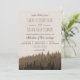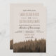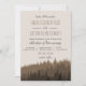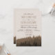 Convite rústico do casamento da montanha no marrom. A imagem de fundo tem uma floresta dos pinheiros na parte inferior nas máscaras do marrom. A cor do fundo é um tan claro. A imagem da montanha é incluída igualmente na parte de trás do cartão. Você pode mudar o texto, a pia batismal, e as cores da pia batismal. Este convite do casamento combina uma coleção em minha loja.