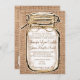 Este convite rústico do casamento do país caracteriza um design do frasco de pedreiro com um matiz marrom e um arco da guita em torno dele, sobre um design impresso da juta de serapilheira do vintage.  A serapilheira e a guita são apenas design impresso, tecido de serapilheira ou corda nao real da guita.  Estes são perfeitos para todo o casamento rústico do condado, especialmente uns que estarão usando frascos de pedreiro e serapilheira suas em decoração do casamento e decorações da recepção de casamento.    Este modelo rústico do convite do casamento do país pode ser personalizado com seu próprio fraseio do convite do casamento.  Se você precisa de adicionar mais linhas de texto ou de mudar a cor ou o estilo da pia batismal, apenas use "personalizam-no" botão.  Cartões wedding de harmonização de RSVP disponíveis separada para seu casamento do frasco de pedreiro do estilo country: