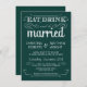 Coma, beba, e é casado -- Convites rústicos do casamento do país do estilo do vintage -- Swirly, os rolos encaracolado e a tipografia da velho-forma no pinho esmeralda da floresta esverdeiam o fundo. Adicione seus nomes e informação wedding neste modelo fácil de usar. Elegante mas divertimento e lunático, a escrita do roteiro do estilo do quadro pode ser alterada para seu tema retro formal ou semi-formal do casamento. O estilo moderno ocasional é perfeito para casamentos contemporâneos na moda com um toque do divertimento de encanto sofisticado para os noivos tradicionais. Contacte-nos por favor para a ajuda com personalização se você precisa a sala adicional para seus detalhes do casamento. Outros tamanhos e estilos do quadro disponíveis.