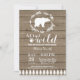 Convite rústico do chá de fraldas do urso polar. Convite do chá de fraldas do inverno. Convite do chá de fraldas do menino ou da menina. Deixe-nos obter selvagens. O chá de fraldas do feriado de inverno convida. Fundo de madeira rústico. Celeiro retro do vintage do país. Para uma personalização mais adicional, clique por favor "personalizam-no" botão e usam-nos nossa ferramenta de design para alterar este modelo.