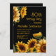 Convite Rústico Elegante Girassóis Negro 80 Aniversário