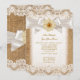 Convite Rústico Lona Creme com Renda, Laço de Flor de Gerb