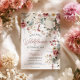 Celebre o seu primeiro aniversário com este convite de flor selvagem com cor-de-rosa pincel, creme, verde-sábio e rosa poeirento. O elegante buquê de aquarela traça um roteiro lúdico que diz "Our Little Wildflower is Turning One", perfeito para festas de jardim ou reuniões rústicas-quicas. Fácil de editar com os seus próprios detalhes de eventos. Ideal para aniversários de primavera, verão ou estilo boho.