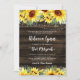 Bat Mitzvah, um belo girassol amarelo, convida para uma festa temática rustica do país. Flores impermeáveis, luzes de cordas e fundo de madeira de celeiro.