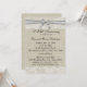 Convite de aniversário de 50 anos em estilo country romântico com renda e saco de aniagem com design impresso de arco de prata. Personalize o texto como preferir.