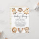 Celebrate the upcoming arrival with our "Safari Baby" Shower baby shower invitation! The design features a group of adorable jungle animals and rustic tropical greenery leaves, perfect for a unique safari-themed baby shower. Personalize your invites today and start the celebration!
