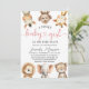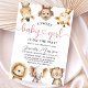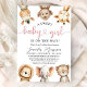 Celebrate the upcoming arrival with our "Safari Baby" Shower baby shower invitation! The design features a group of adorable jungle animals and rustic tropical greenery leaves, perfect for a unique safari-themed baby shower. Personalize your invites today and start the celebration!