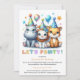Convite Safari Birthday - Glitter Blue Hippo, Tiger, Leão