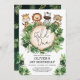Celebre o primeiro aniversário do seu menino com este convite de festa temático de safari caprichoso. O design apresenta um grupo de adoráveis animais da selva e exuberante vegetação tropical em aquarela