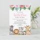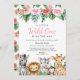 Convite para Chá Safari Jungle Baby Girl | Tema do Chá de fraldas Safari Tropical Celebre seu pequeno selvagem com este Convite para Chá Safari Jungle Baby Girl! Apresentando adoráveis animais da selva, verde tropical exuberante e sotaques rosa macios, este convite traz uma vibração divertida e na moda para a sua celebração. Perfeito para chás de fraldas tradicionais, festas tropicais de jardim ou temas de aniversário selvagens. Personalize facilmente para criar um evento doce, de um tipo!