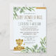 Este bonitinho safari temático chá de fraldas por correio é tão doce. É certo que faz seus amigos e família sorrirem quando os convida para o seu chá de fraldas por e-mail para um menino ou menina. Esta design neutra de gênero apresenta um doce leão bebê enquadrado por folhas botânicas de eucalipto e dourado.