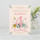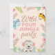 Convidem convidados para uma celebração arrogante com este delicioso design de safari! Destacado por um vibrante "4" e rodeado por um leão, zebra, elefante e macaco amigáveis em matizes pastéis, este convite é perfeito para uma quarta festa de aniversário. Personalize-o com o nome, a idade e os detalhes da festa do seu filho para torná-lo especial. Prepare-se para um dia cheio de risos e diversão selvagem!
