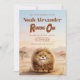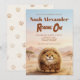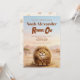 Safari theme first birthday invitation featuring an original character from the Hystrix Little Thoughts® collection. This design features Zuberi: a charming fluffy leopard character, whose name means “strong” and “powerful,” adding a meaningful and symbolic touch to this “Roaring One” birthday. Set in a soft watercolor African safari landscape with warm earth tones, gentle hills, and acacia trees, this invitation creates a sweet and adventurous atmosphere, perfect for a wild one safari party or baby boy first birthday.