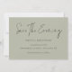 Manuscrito Minimalista Pálido Verde Salve A Noite. Disponível digitalmente e impresso. Simples elegância para enviar aos seus convidados da noite. Salvar A Noite está em um script de conjunto moderno.O resto do texto que você pode personalizar facilmente.Mostrado aqui em preto no verde Sage, entretanto, as cores de texto e plano de fundo podem ser alteradas se você desejar por meio da opção personalizar mais.
