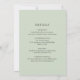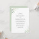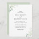 Elegante botânico All In One Wedding Invitation com um layout simples que apresenta um som verde de eucalipto em uma bela sombra de verde sábio no canto superior esquerdo e canto inferior direito. A parte traseira tem um modelo que funciona como sua placa de gabinete, onde você pode adicionar detalhes de convidado. Uma escolha simples e moderna perfeita para um casamento de primavera ou verão.
